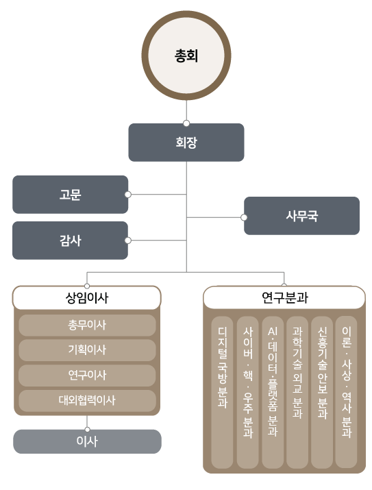 | 상임이사 | 등기 상임이사(6인) | 윤대엽(연구이사), 윤정현(총무이사), 이수연(총무이사), 송태은(기획이사), 신승휴(기획이사), 김명하(대외협력이사) |